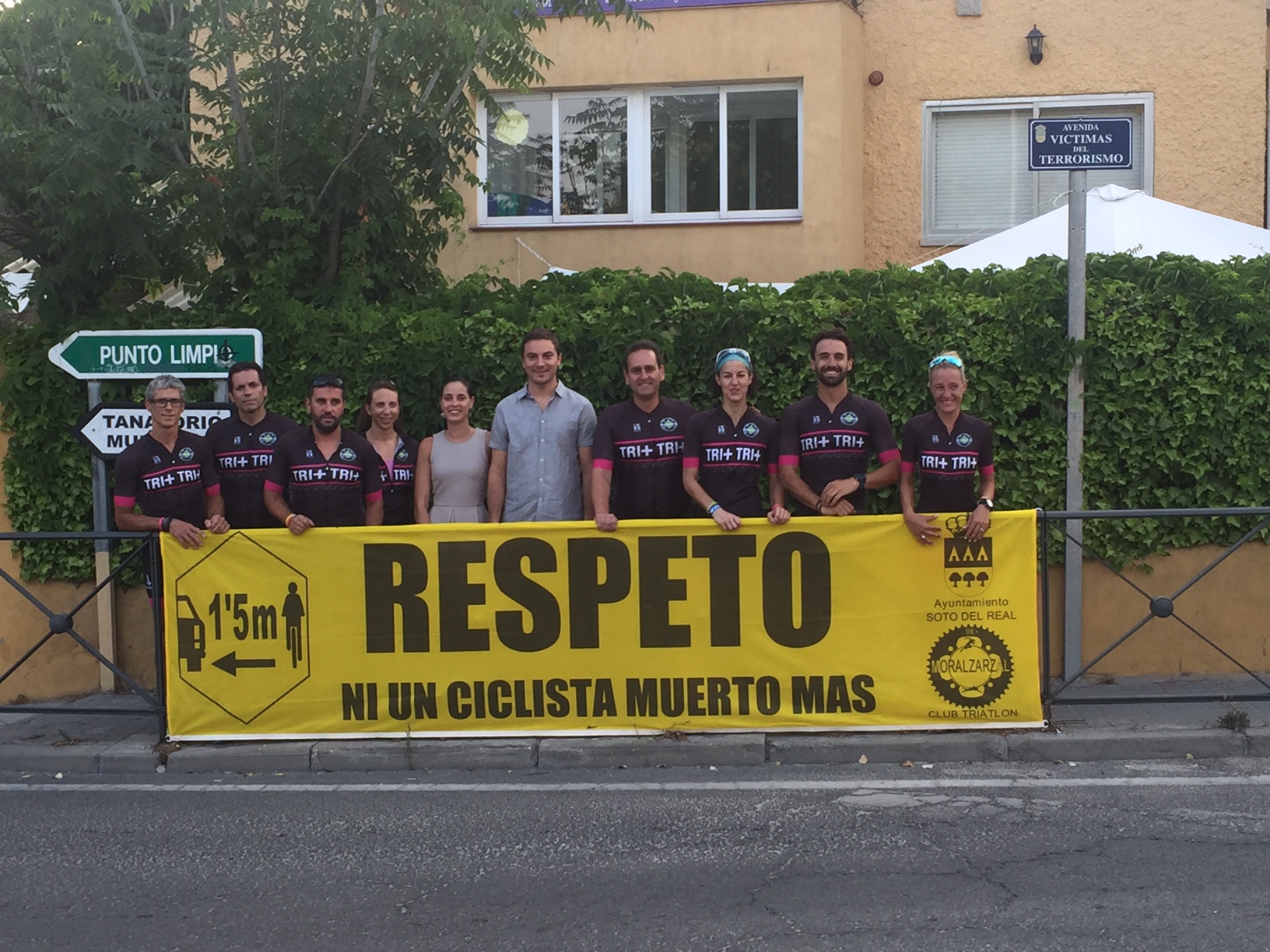 El club de Triatlón de Moralzarzal , Tri + Moralzarzal (la marea rosa de la Sierra) en colaboración con la empresa Villalbina Banderas y Soportes Publicitarios siguen con esta campaña en nuestra comarca de respeto al ciclista.