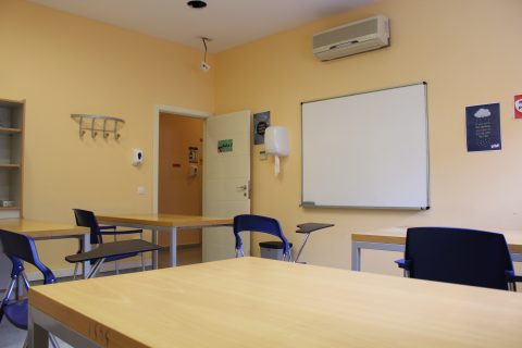 -Salas aula: disponen de pizarras, mesas, sillas y proyectores.