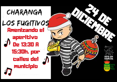 La charanga “Los Fugitivos” será la encargada de amenizar el clásico aperitivo navideño. Pasará por las diferentes calles del municipio haciéndonos disfrutar de la música en directo y sobretodo saltar y bailar.