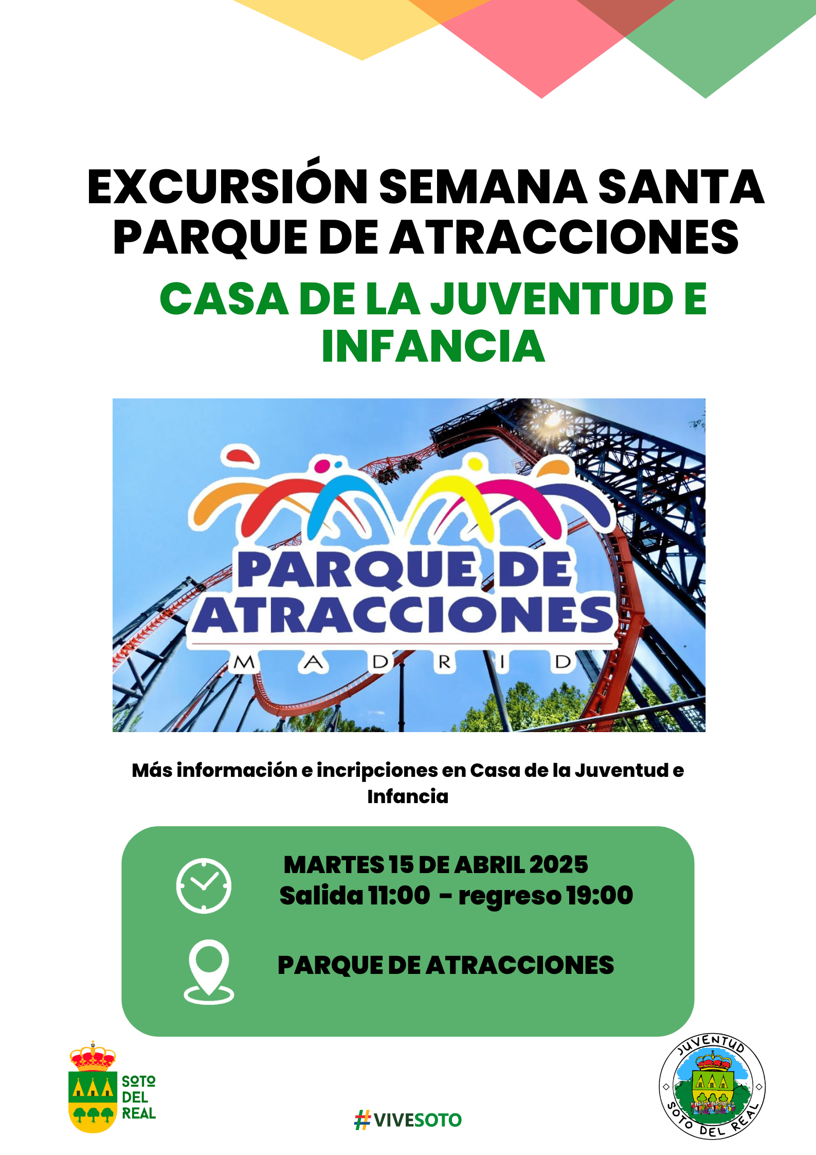 El martes 15 de abril de 2025 la CASA DE LA JUVENTUD E INFANCIA se va de excursión al PARQUE DE ATRACCIONES. Se trata de una excursión conjunta con la Casa de la Juventud de Miraflores de la Sierra.