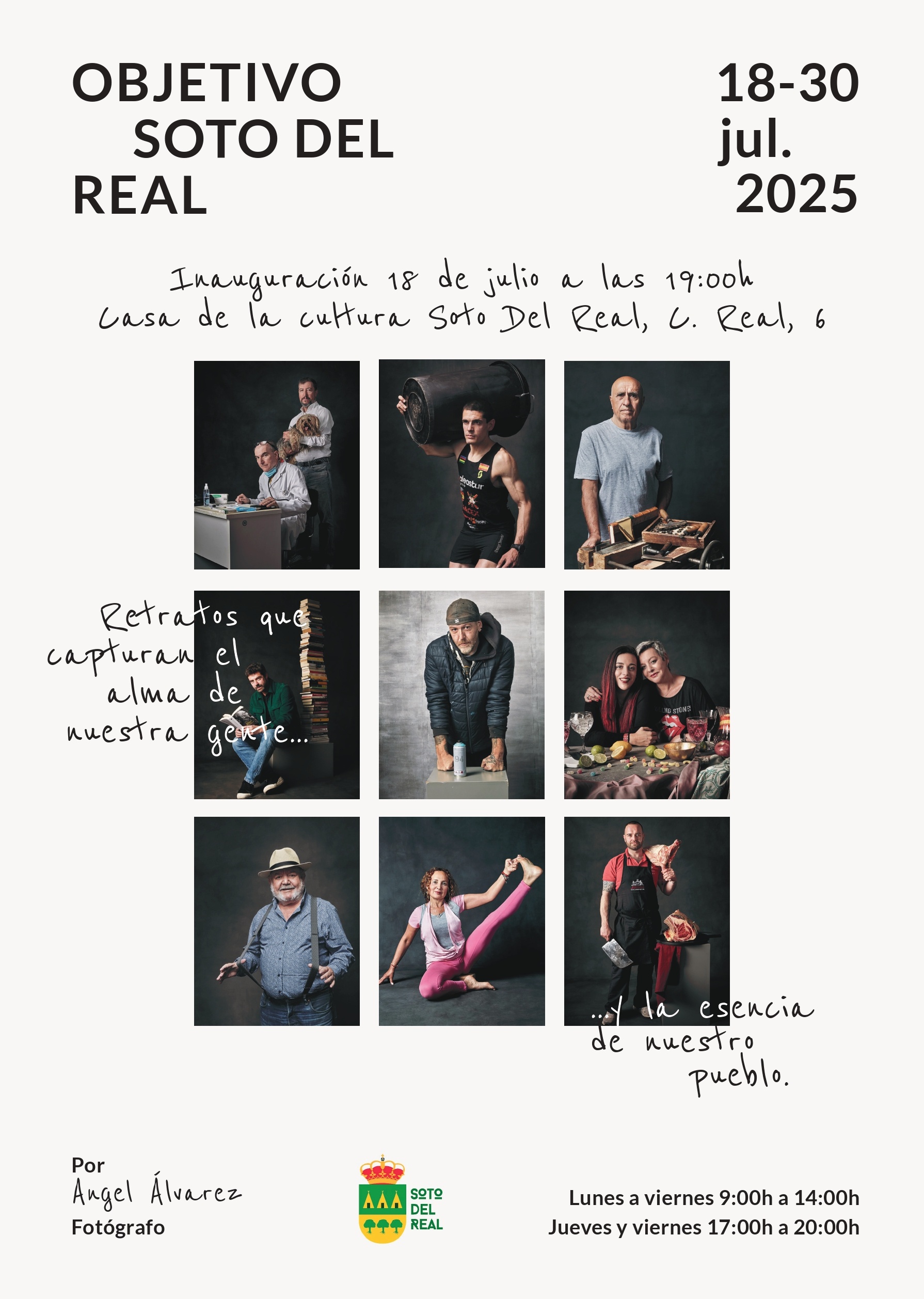 “OBJETIVO SOTO DEL REAL” es un trabajo personal que recoge una serie de retratos de diferentes personajes de Soto del Real, que intenta captar la esencia de cada uno de ellos.