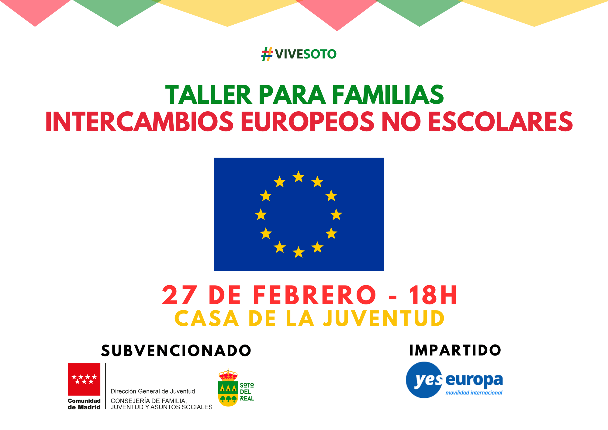La formación será impartida por YES EUROPA y cuenta con la subvención de la Escuela de Animación de la Comunidad de Madrid, dentro de la Consejería de Familia, Juventud y Asuntos Sociales.