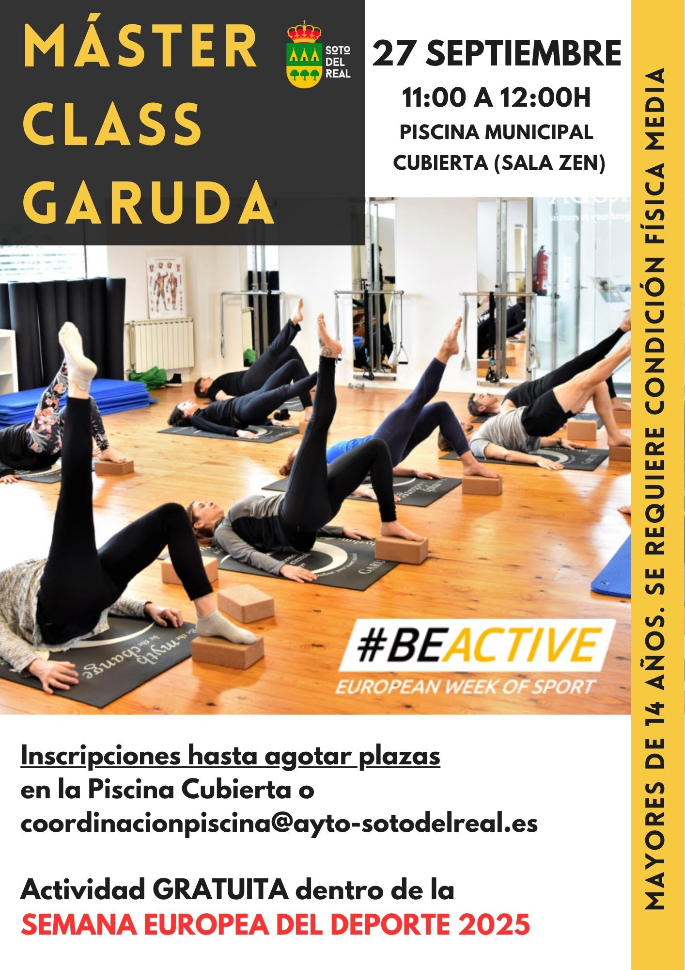INSCRIPCIONES: Inscripciones hasta completar aforo en la Piscina Cubierta o a través del correo infopiscina@ayto-sotodelreal.es PLAZAS LIMITADAS