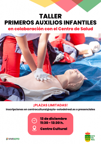 Día: 13 diciembre; Hora: 11:30 - 13:30 h. Lugar: Centro Cultural Inscripciones: Centro Cultural / centrocultural@ayto-sotodelreal.es / 91 848 01 14 ¡PLAZAS LIMITADAS! Taller de primeros auxilios infantiles en colaboración con el Centro de Salud de Soto del Real. Lo impartirá Luis Leao (médico de familia y de urgencias y emergencias), Belén Sisto (matrona) y […]