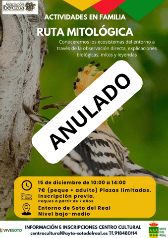 DÍA: 15 de diciembre; HORA: 10:00 a 14:00 h; LUGAR: entorno de Soto del Real; INSCRIPCIONES: Centro Cultural; PRECIO: 7€ la pareja (niño + adulto). PÚBLICO: Familias y niños/as a partir de 7 años. Máximo 30 personas. Una ruta en la que conoceremos los ecosistemas mediterráneos de Soto del Real y sus especies más singulares. […]