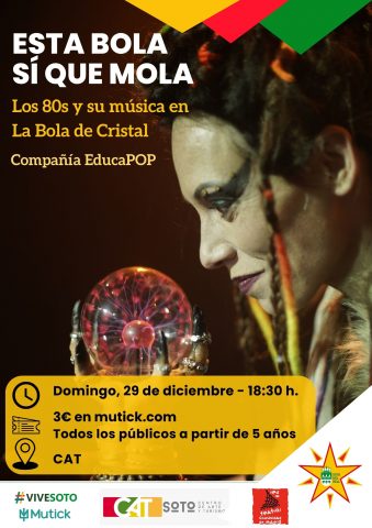 TIPO DE ACTIVIDAD: Concierto de música, todos los públicos; FECHA: domingo 29 de diciembre; HORA: 18:30 h; LUGAR: CAT; ENTRADAS: 3 € en mutick.com; Los 80s y su música de la mano del mítico programa La bola de Cristal. Hablaremos del icónico programa, recordaremos los momentos más anecdóticos y desternillantes y bailaremos con la nieta […]