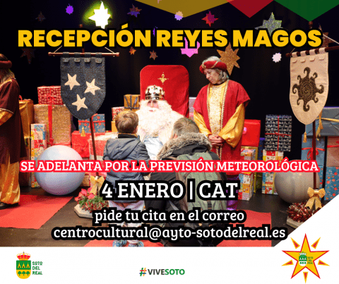 ¡¡Se adelanta por la previsión meteorológica al 4 de enero!! Después de la tradicional Cabalgata, Sus Majestades los Reyes Magos recibirán a todos los niños y niñas en un encuentro especial lleno de ilusión en el CAT. Reserva tu cita hasta el 4 de enero escribiendo al correo: centrocultural@ayto-sotodelreal.es Inicio de las visitas: a partir […]