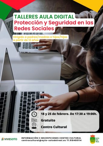 TÍTULO DEL EVENTO: Protección y Seguridad en las Redes Sociales TIPO DE ACTIVIDAD: Taller FECHAS: 18 y 25 de febrero HORA: 17:30 a 19:00h. LUGAR: Centro Cultural PRECIO: Gratuito PÚBLICO: dirigidos a padres/madres e hijos/hijas a partir de 12 años. Este curso se desarrolla en modalidad mixta, es decir, se trabaja de manera online y […]