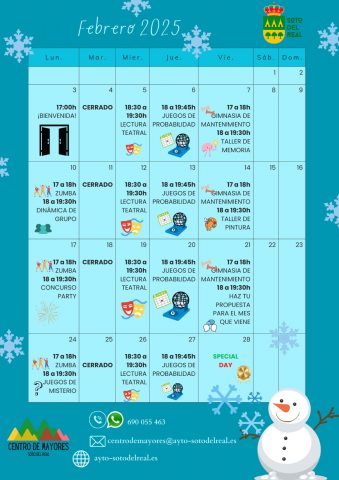 DÍAS: 28 de febrero; HORA: LUGAR: Centro de Mayores; INSCRIPCIÓN: no es necessaria, admisión libre hasta completar aforo.