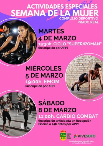 Día: 8 de marzo Hora: 11:00 h. Lugar: Complejo Deportivo Prado Real Inscripción: inscripción anticipada en recepción piscina o 24h antes por App
