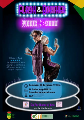 DÍA: 16 de marzo; HORA: 17:30 h; LUGAR: C.A.T. ENTRADAS: 3€ en mutick.com “FLASH & BORTHER MAGIC SHOW“es un espectáculo de Humor y Magia, en clave de clown. ”Flash & Borther Magic Show” pretende sorprender al público revelando la relación de Mago y Partener, consiguiendo que el rol de ésta última, adquiera la importancia que […]