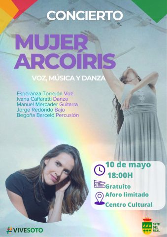 Concierto: Mujer Arcoíris 10 de mayo a las 18:00h en el salón de Actos del Centro Cultural Entrada gratuita hasta completar aforo. Mujer Arcoíris es un viaje musical, a través de siete canciones vinculadas a la simbología de los siete colores del espectro del arcoíris. Cada color conecta con un espacio o “puerta” de sabiduría femenina […]