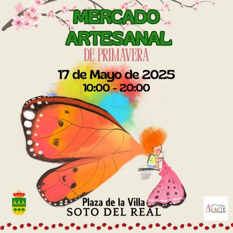 DÍA: 17 mayo; HORA: 10:00 a 20:00 h; LUGAR: Plaza de la Villa; ACARTE nos presenta la edición de este 2025 de su Mercado de Primavera, donde podremos disfrutar de los mejores productos artesanos y de artistas de la Sierra.