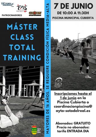 DÍA: 7 junio; HORA: 10:00 a 11:30 h LUGAR: Complejo deportivo Prado Real (jardines); INSCRIPCIÓN: Inscripción anticipada hasta el 1 de Junio (o agotar plazas) en la Piscina Cubierta o a través del correo infopiscina@ayto-sotodelreal.es PRECIO: GRATUITO para abonados de la instalación. Los no abonados podrán acceder a la actividad con la compra de la […]