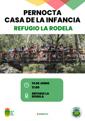 DÍAS: Sábado 14 al domingo 15 de junio; HORA: 17:00 h; LUGAR: Refugio La Rodela; PÚBLICO: niños de 4º,5º y 6º primaria + 1º de la ESO – nacidos 2012 a 2015; INSCRIPCIONES: Inscripciones obligatorias en juventud@ayto-sotodelreal.es o bien en la Casa de la Infancia en su horario de apertura. HoJa de inscripción AQUÍ. PRECIO: […]
