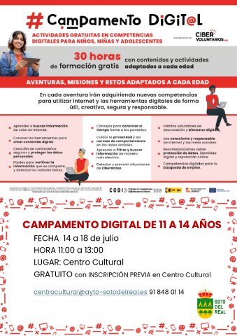 FECHA: Del 14 al 18 de julio; HORA: 11:00 a 13:00 h; LUGAR: Centro Cultural; ENTRADA: GRATUITO con INSCRIPCIÓN PREVIA en Centro Cultural; PÚBLICO: Actividad para jóvenes de 11 a 14 años. INSCRIPCIÓN: gratuita en el Centro Cultural, hasta el 13 de junio; Contenidos. • Conocer las herramientas para crear contenido digital. • Creación de […]