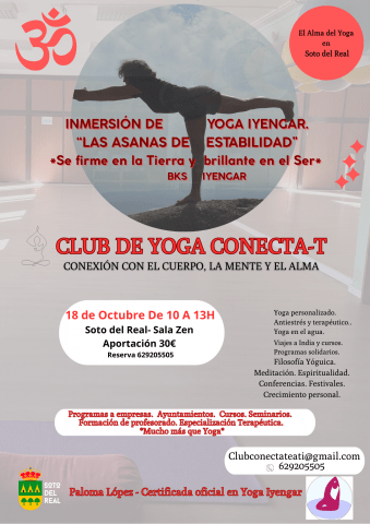18 de Octubre De 10 A 13H Sábado por la mañana. YOGA IYENGAR CON PALOMA *ASANAS DE ESTABILIDAD * *SÉ FIRME EN LA TIERRA Y BRILLANTE EN EL SER* La estructura física cambia a la mental. La estabilidad es un estado que fluctúa. Aprender de nuestro cuerpo en la práctica de Yoga nos ayuda a […]