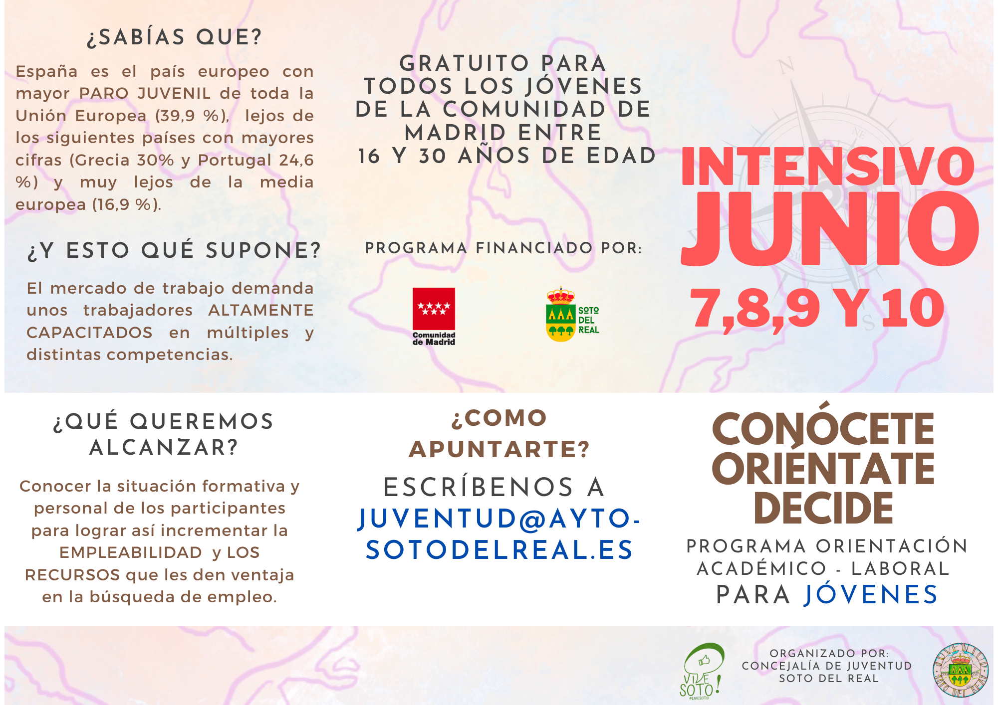 Tras el lanzamiento del programa juvenil para mejorar la empleabilidad, ‘Conócete, oriéntate y decide’ el pasado mes de mayo, desde la Concejalía de juventud se ha ampliado esta iniciativa con un formato intensivo.