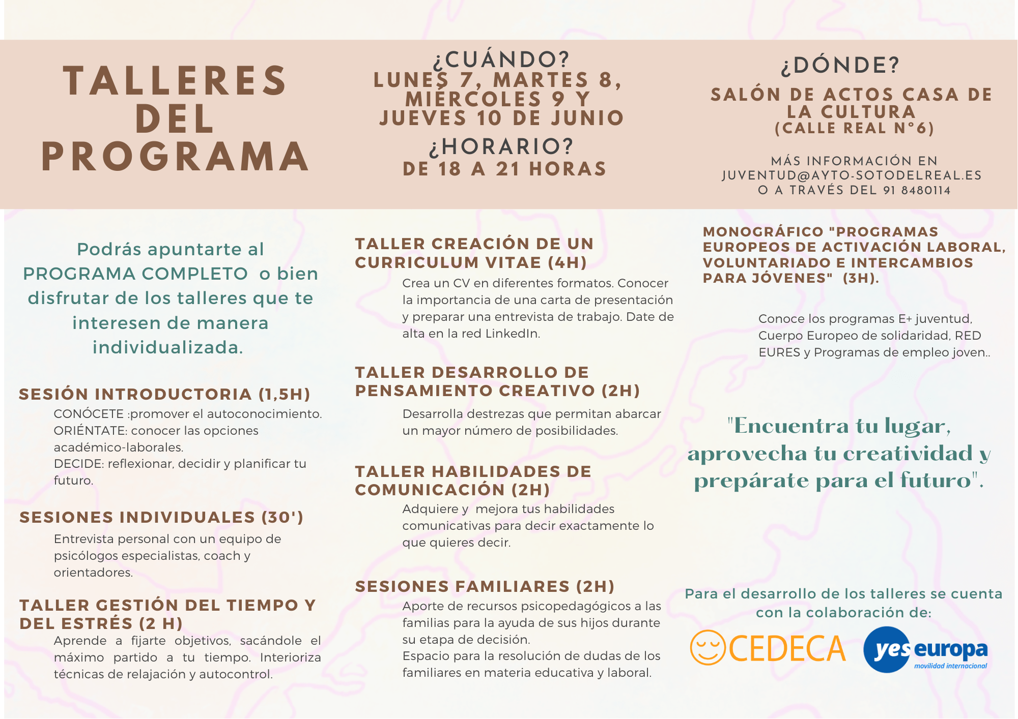 - La Concejalía de Juventud relanza sus talleres de orientación juvenil en formato intensivo los días 7,8,9, y 10 de junio