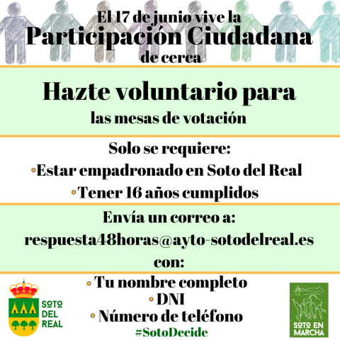 ¿Quieres ser voluntario en las mesas de votación el 17 de junio?