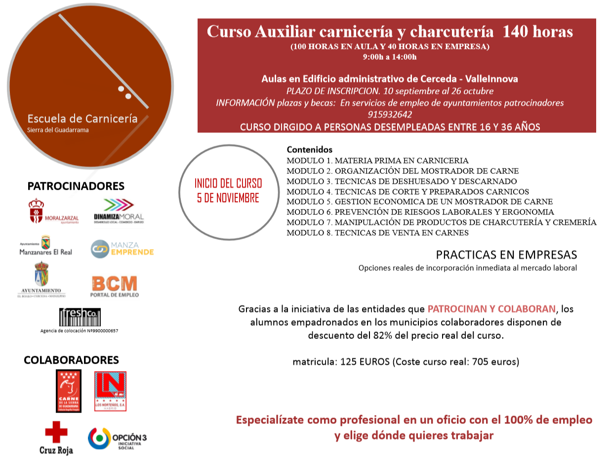 Esta semana se ha presentado en Moralzarzal la Escuela de Carnicería Sierra de Guadarrama, un proyecto organizado por la empresa fresCo en colaboración con cuatro municipios serranos: Moralzarzal, BOCEMA (El Boalo, Cerceda y Mataelpino), Manzanares el Real y Soto del Real.