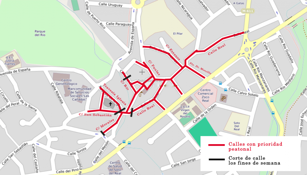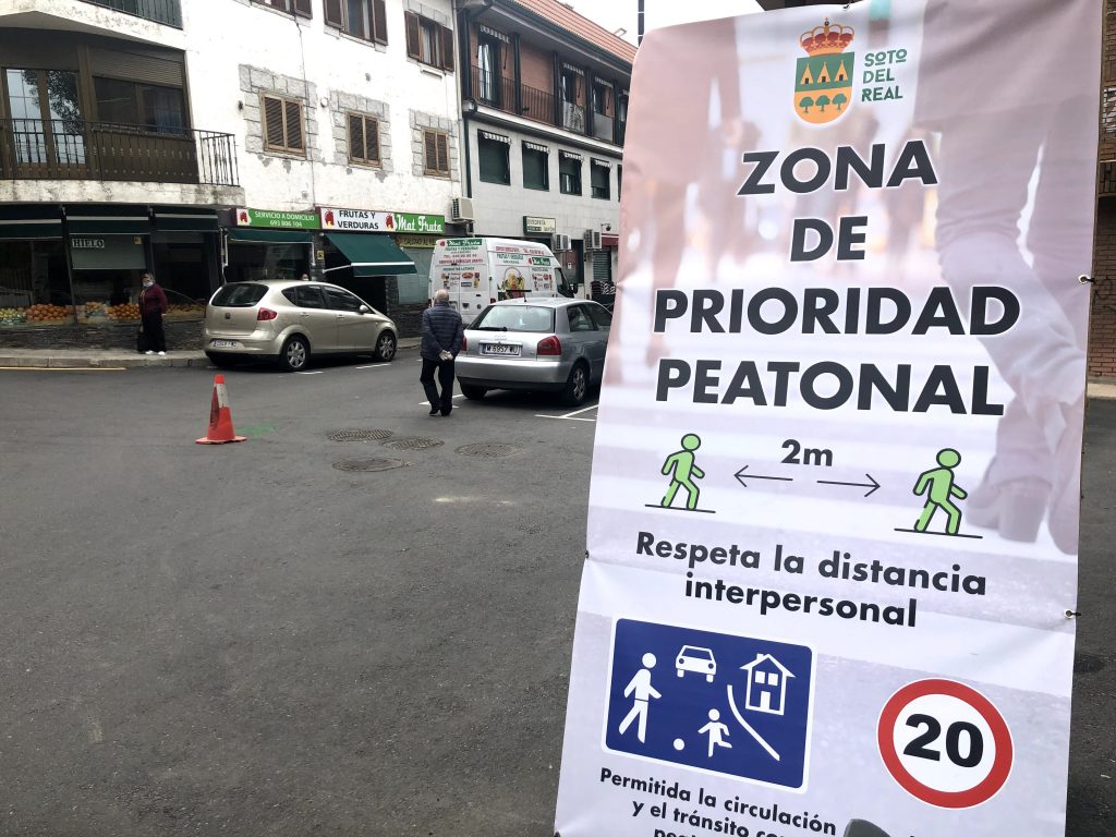 El Ayuntamiento de Soto del Real establece zonas de prioridad peatonal y limitaciones al tráfico en el casco urbano, con el fin de incrementar el espacio peatonal para garantizar la distancia social recomendada por las autoridades sanitarias.