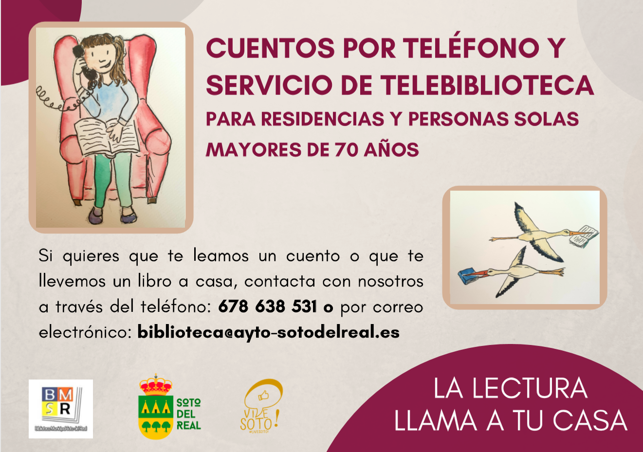 La Biblioteca municipal de Soto del Real lanza dos nuevas iniciativas para fomentar la lectura mientras dure el confinamiento: servicio de telebiblioteca y cuentos por teléfono para mayores.