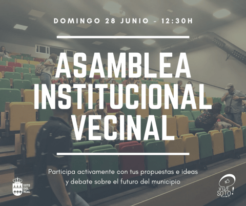 Como cada año, Soto del Real celebrará una Asamblea Institucional Vecinal donde los vecinos participan activamente con sus propuestas, ideas y debate sobre el futuro del municipio. Una jornada de reflexión entre vecinos para que puedan exponer sus dudas e inquietudes y a la vez trasladar sus propuestas a los grupos políticos asistentes.