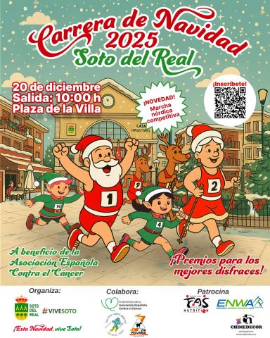 - El Ayuntamiento de Soto del Real invita a vecinos y vecinas a disfrutar de una jornada deportiva, festiva y solidaria el próximo 20 de diciembre, con recorridos para todas las edades y un ambiente lleno de espíritu navideño.