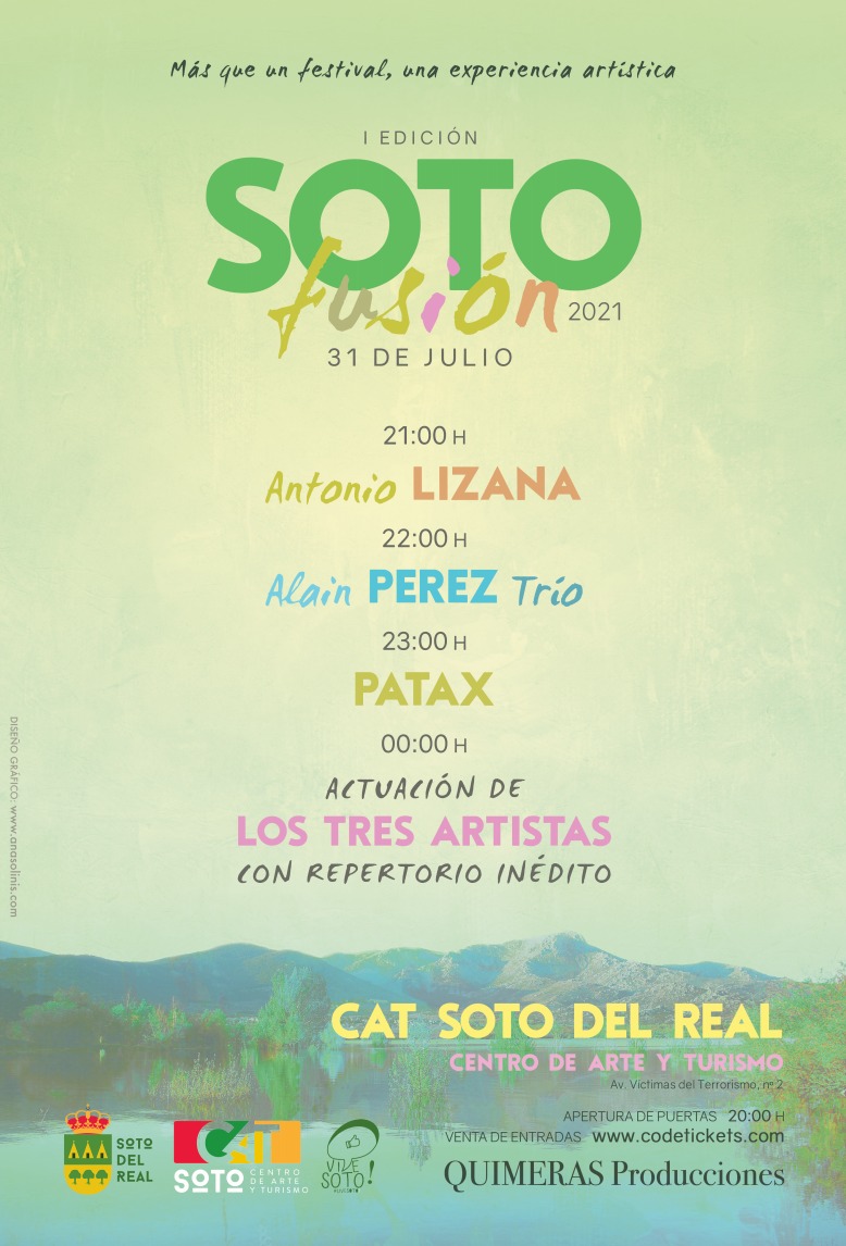 - Actuarán Antonio Lizana, Alain Pérez y PATAX. Las entradas ya están a la venta con precio reducido para empadronados en Soto en el bar del CAT y de forma general en www.codetickets.com