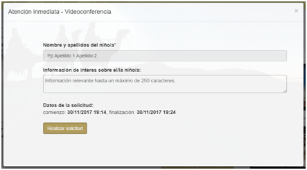- Si la cita es de tipo “Atención Inmediata” (Botón “Hablar con tu Rey Mago”), hay que rellenar el siguiente formulario básico incluyendo cualquier información relevante para el Rey Mago sobre el niño en cuestión: