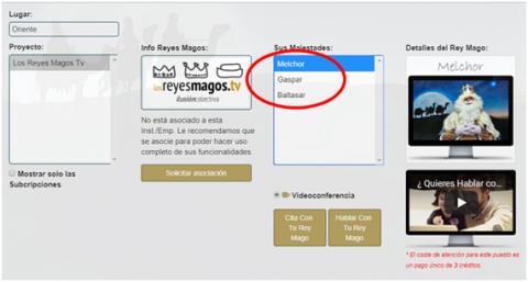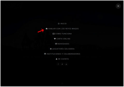 - Se selecciona en el menú desplegable, situado en la esquina superior derecha, la opción “Hablar con los Reyes Magos”: