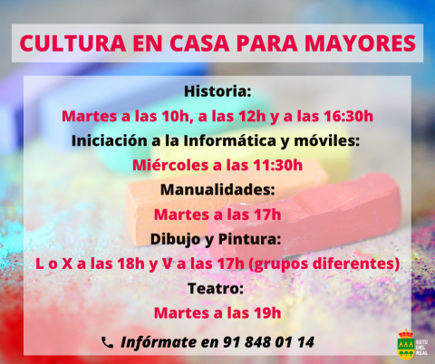 Si tienes alguna duda o problema contacta con el Centro Cultural por teléfono o correo electrónico: 918480114 (de lunes a viernes de 9h a 14h) y centrocultural@ayto-sotodelreal.es.