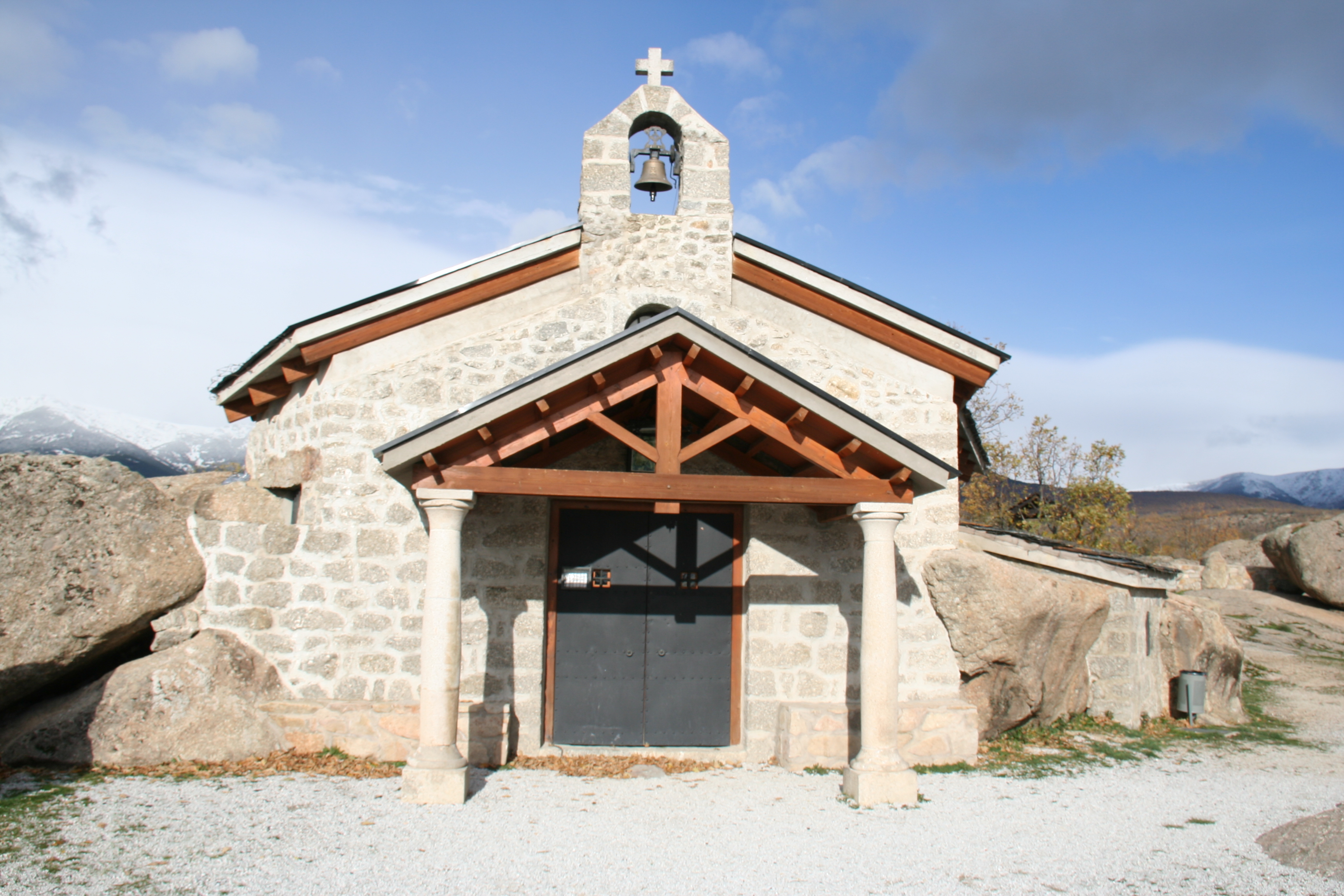 It was built in 1954 on an estate known as “Peña Mingazo”, and donated by Mrs. Pilar González, the mother of the former Archbishop of Madrid, Mr. Casimiro Morcillo. The Ermita de la Patrona (Patron Saint’s Hermitage) stands upon a small rocky plateau measuring around 1.000 m2, at a distance of approximately one and a half kilometres from the village. It presents a simple architectural style that easily merges with its geographical surroundings. From the plateau, one can view the whole municipality of Soto del Real.